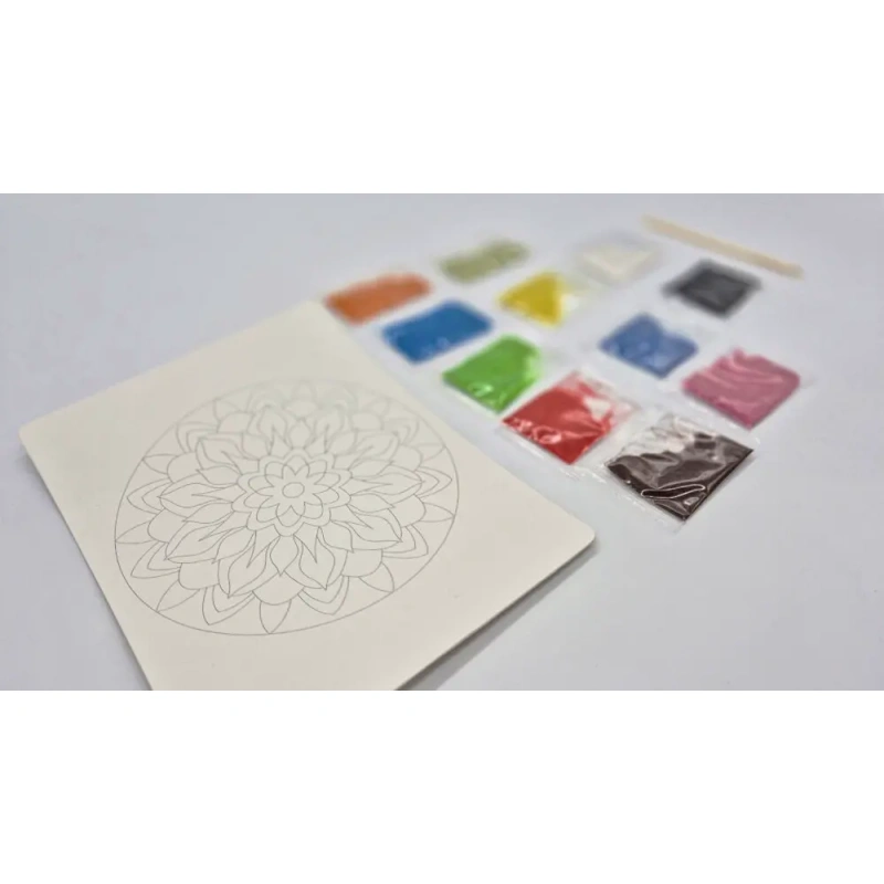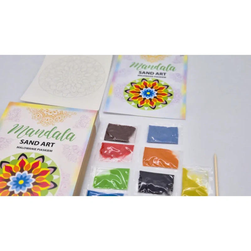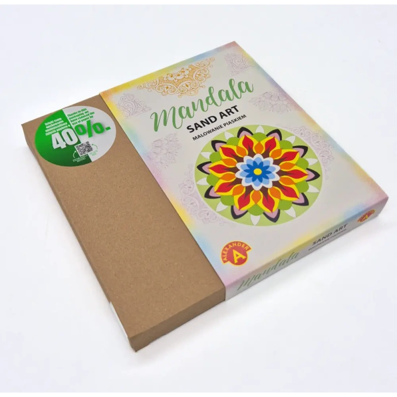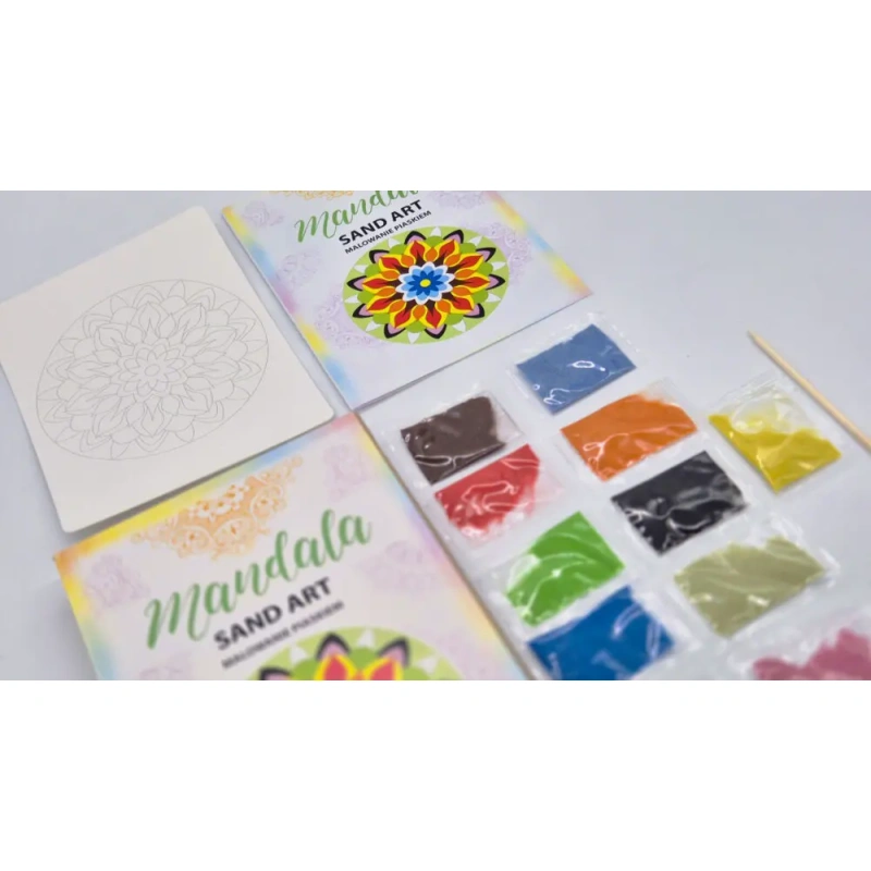 Caring for the planet is also a form of harmony. The product is packaged in eco-friendly packaging that uses 40% less paper. The set is affordable, making relaxation accessible to everyone. Do something for yourself. Create your own mandala. Discover the magic of colored sand.