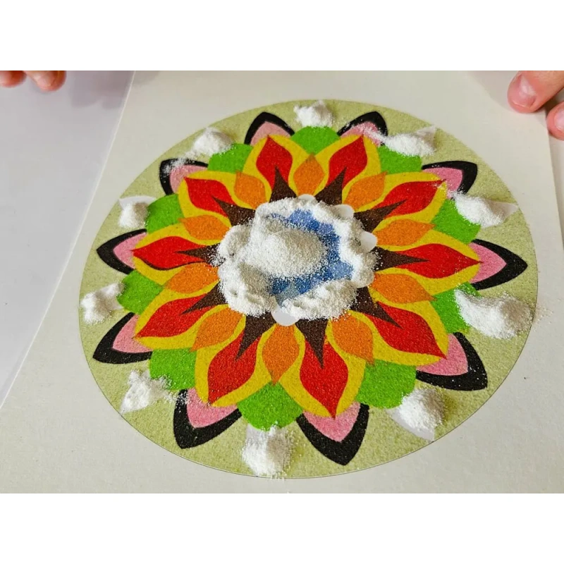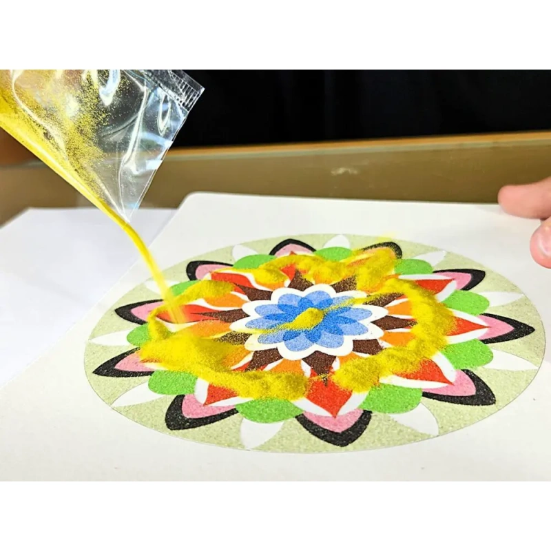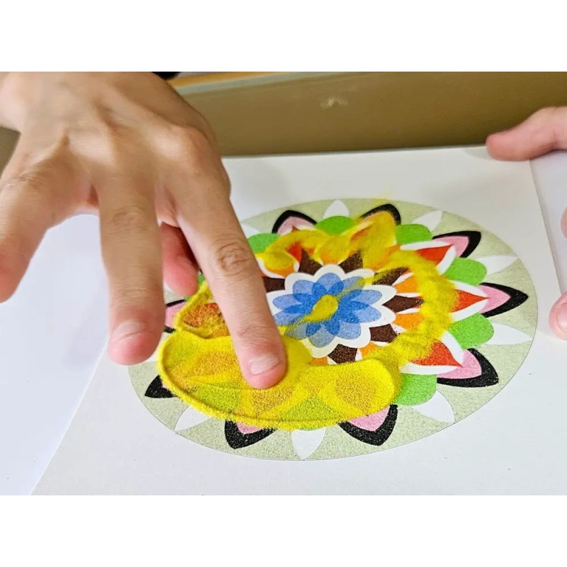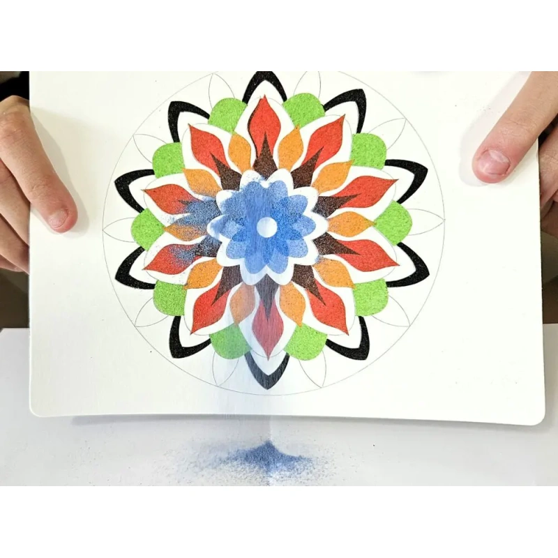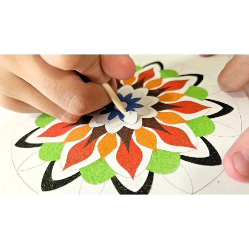 Each time you uncover a piece of the pattern and gently pour the sand, it becomes a small ritual, an exercise in mindfulness, where only the here and now counts. It’s a moment when the world outside slows down, and you find peace in simple gestures and beautiful colors.