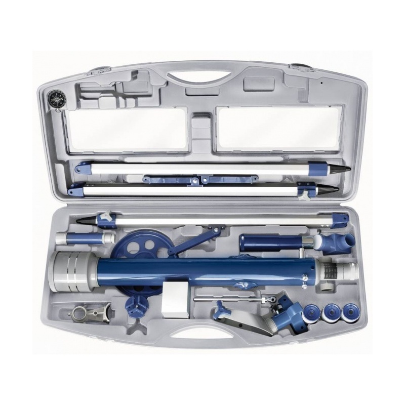 Teleskoobi ulatus võimaldab lihtsalt leida taevakehi, sujuvalt ja hõlpsalt reguleeritav statiiv sobib amatööridele. Komplektis on kandekohver oluliste lisatarvikutega nagu kuukaart ja kompass.